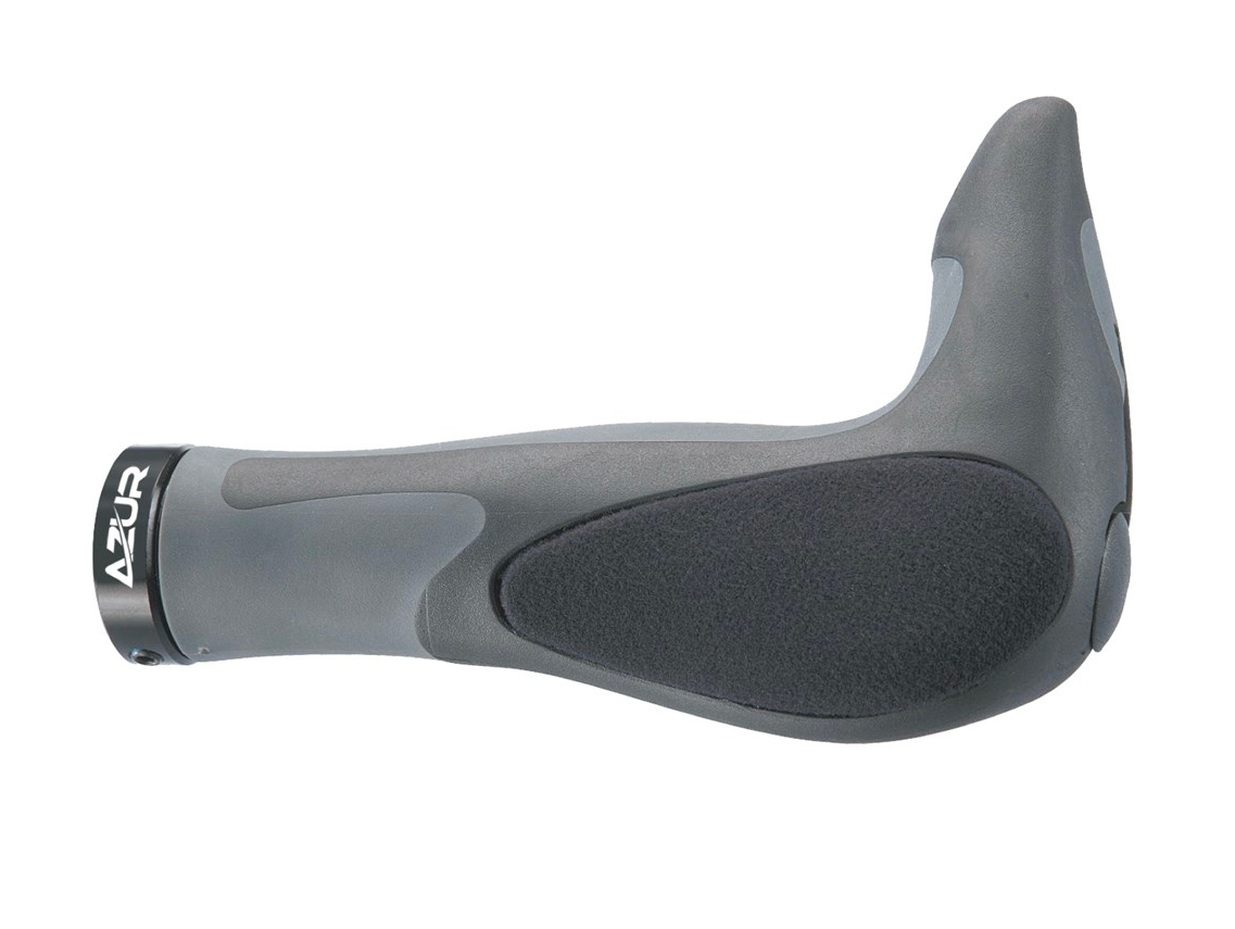 Two hand-positions for different riding styles. Anatomic shape with built-in bar end. Soft kraton rubber absorbs shocks. Alloy lock on system prevents turning.